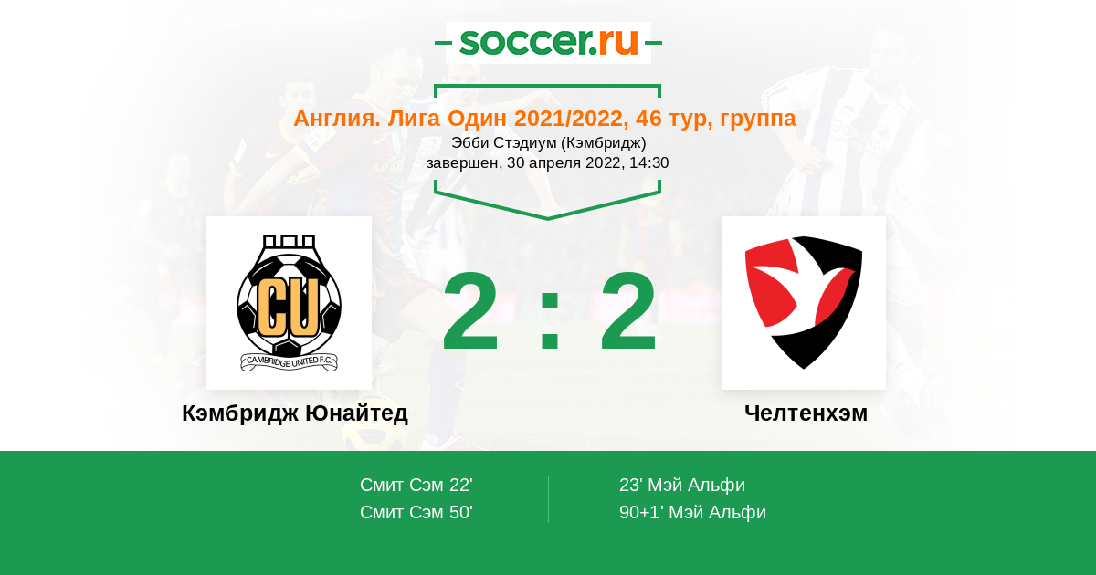 Протокол матча Кэмбридж Юнайтед против Челтенхэм