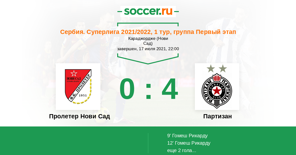 Протокол матча Пролетер Нови Сад против Партизан