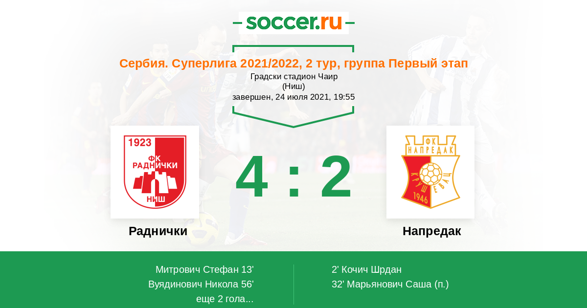 Протокол матча Раднички против Напредак