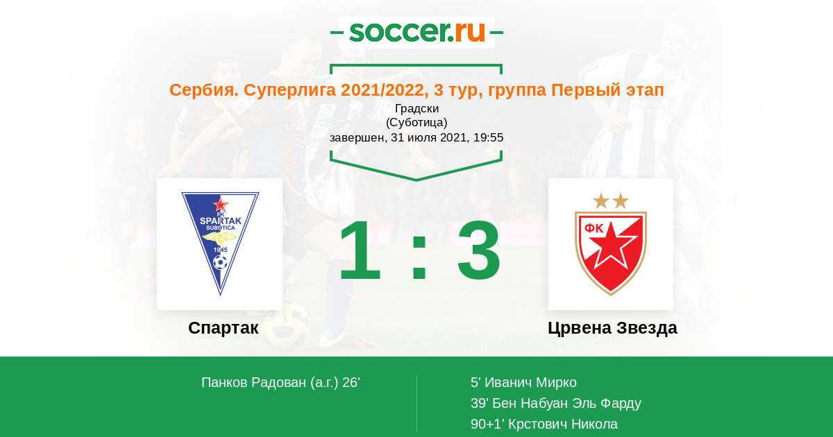 Протокол матча Спартак Суботица против Црвена Звезда