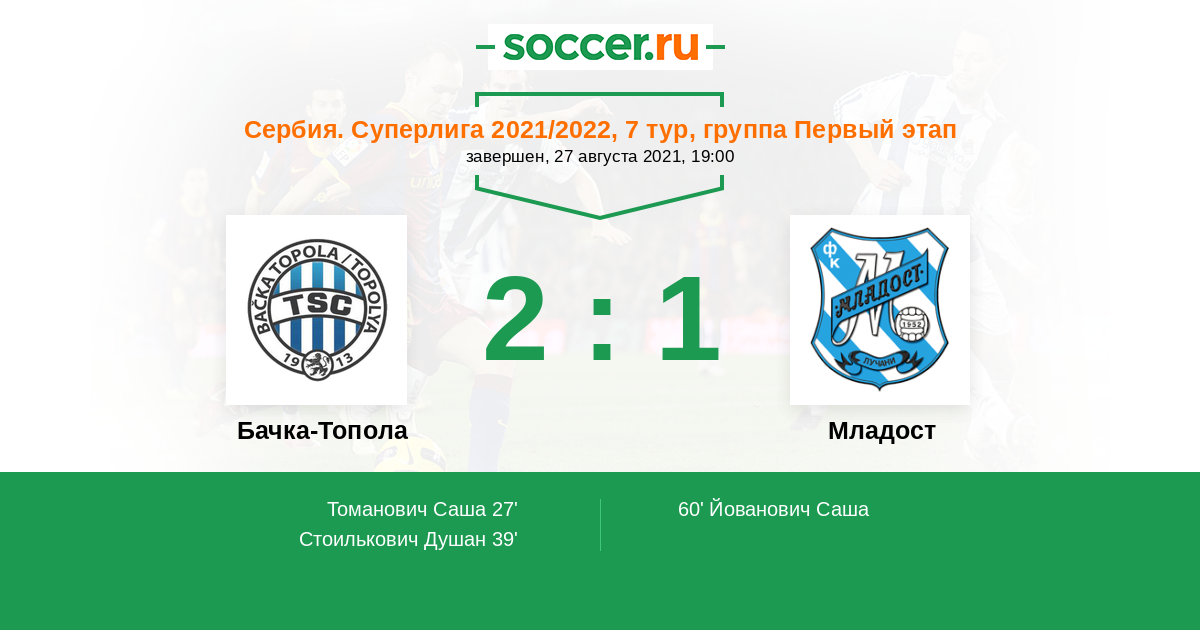 Протокол матча Бачка-Топола против Младост