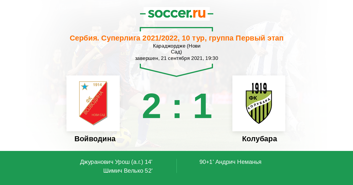 Протокол матча Войводина против Колубара