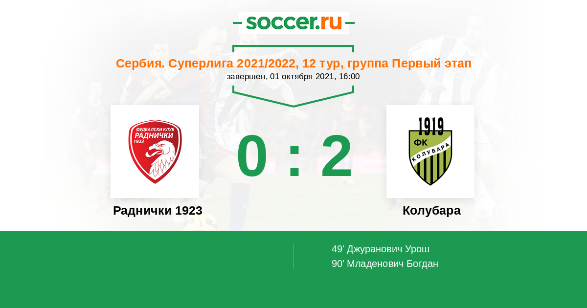 Протокол матча Раднички 1923 против Колубара