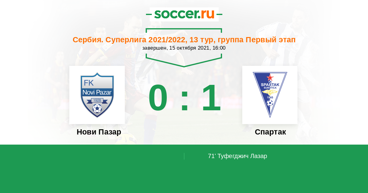 Протокол матча Нови Пазар против Спартак Суботица