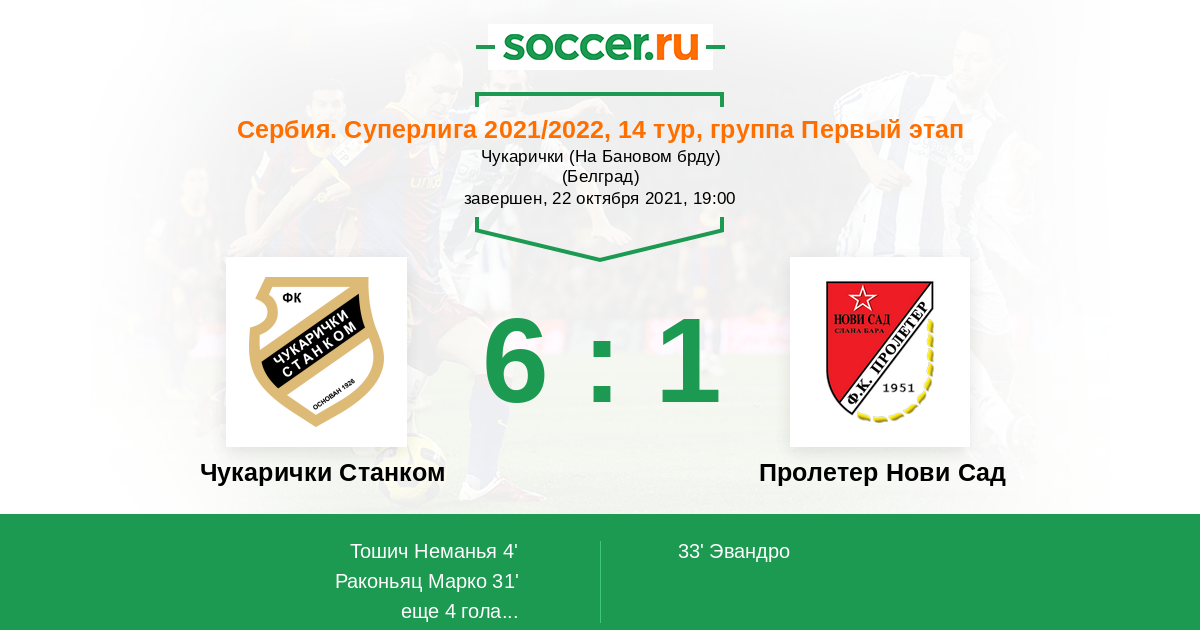 Протокол матча Чукарички Станком против Пролетер Нови Сад