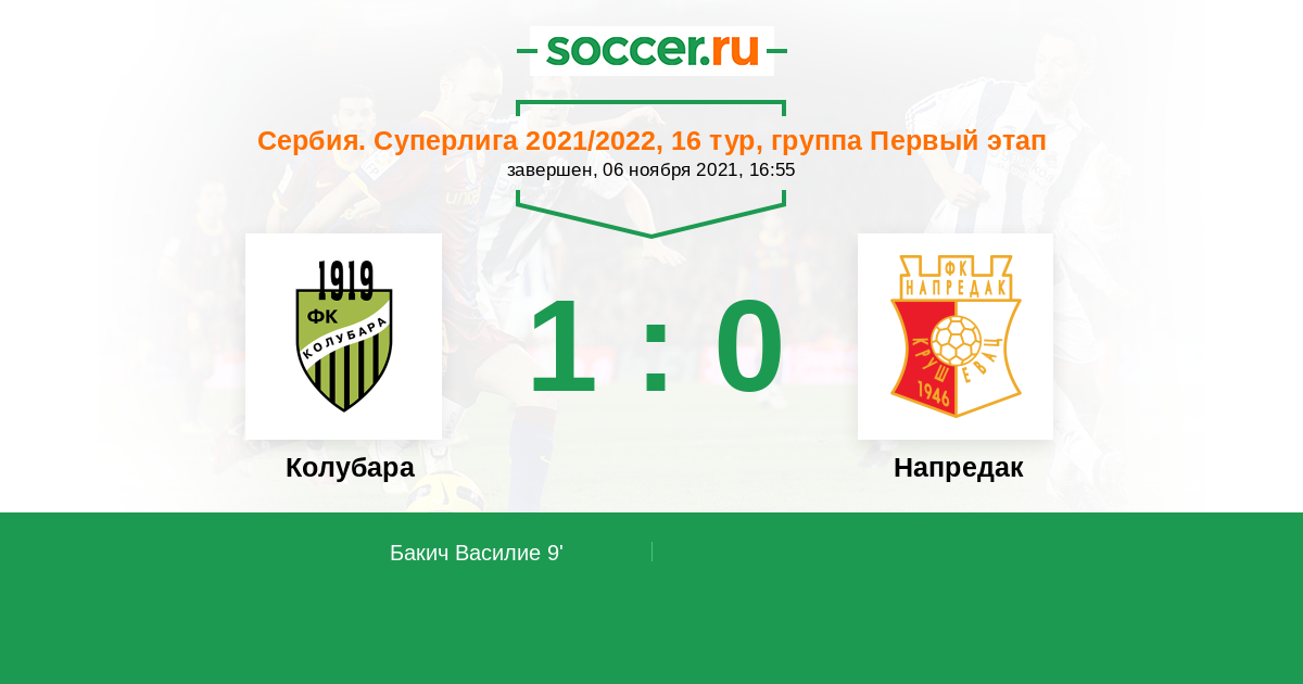 Протокол матча Колубара против Напредак