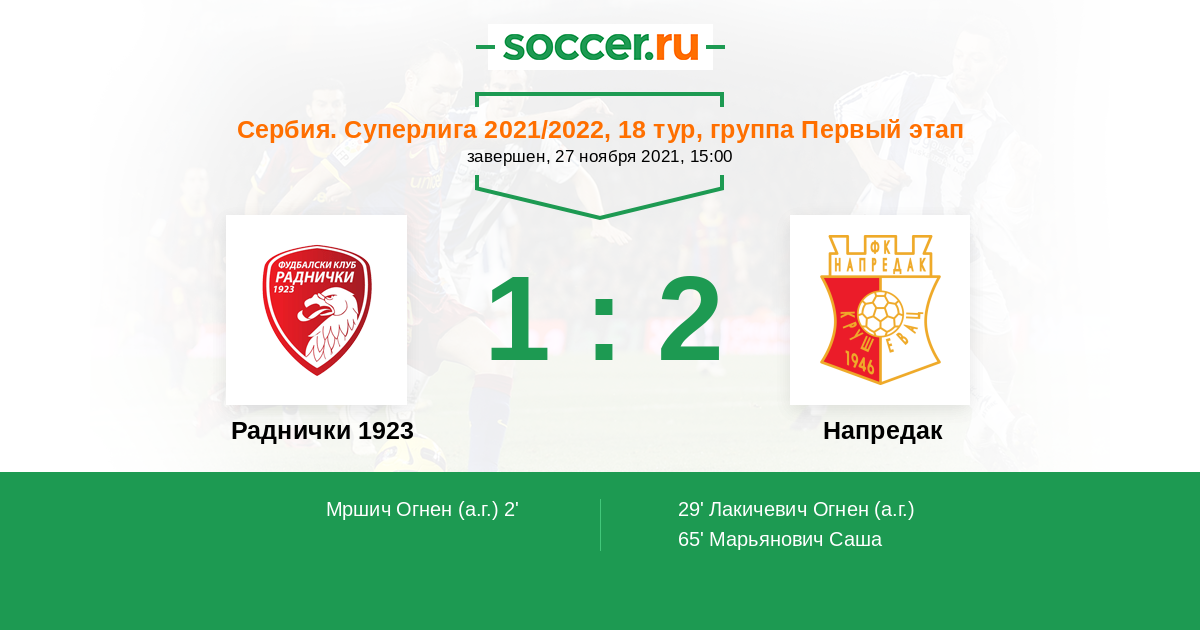 29' (1:1) Автогол Лакичевич Огнен (3)