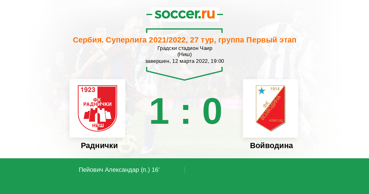 Протокол матча Раднички против Войводина