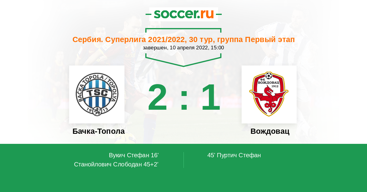 Протокол матча Бачка-Топола против Вождовац