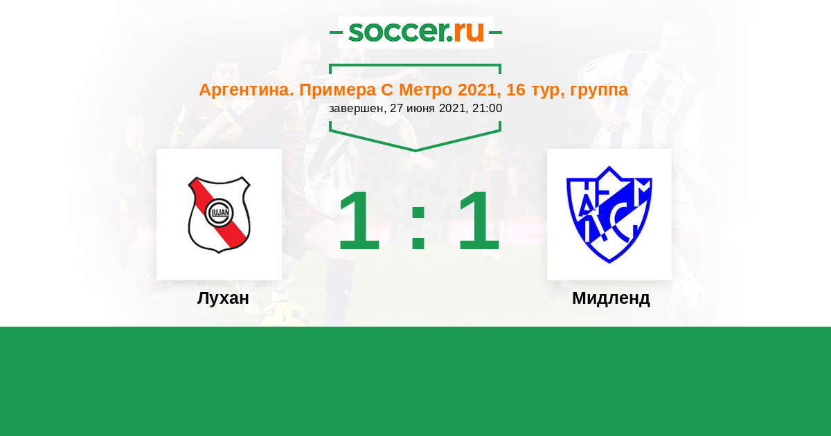 Аргентина. Примера С Метро 20.12.2020 Мидленд Логотип футбольный клуб Мидленд (Либертад) 0:2 Логотип футбольный клуб Лухан Лухан