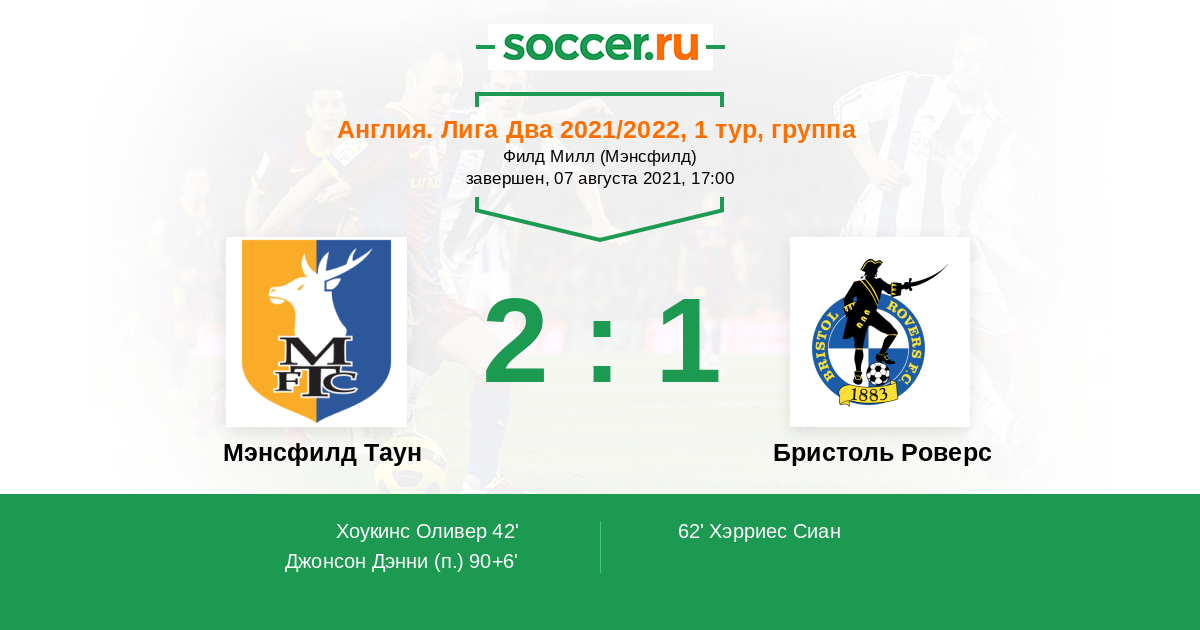 Протокол матча Мэнсфилд Таун против Бристоль Роверс