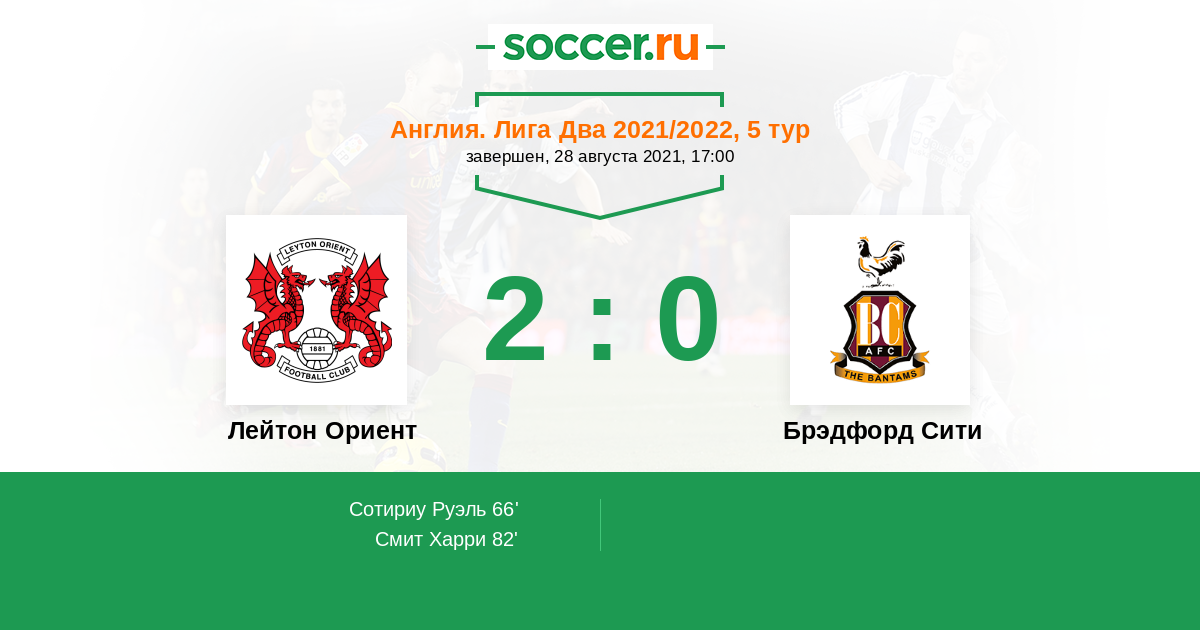 Протокол матча Лейтон Ориент против Брэдфорд Сити