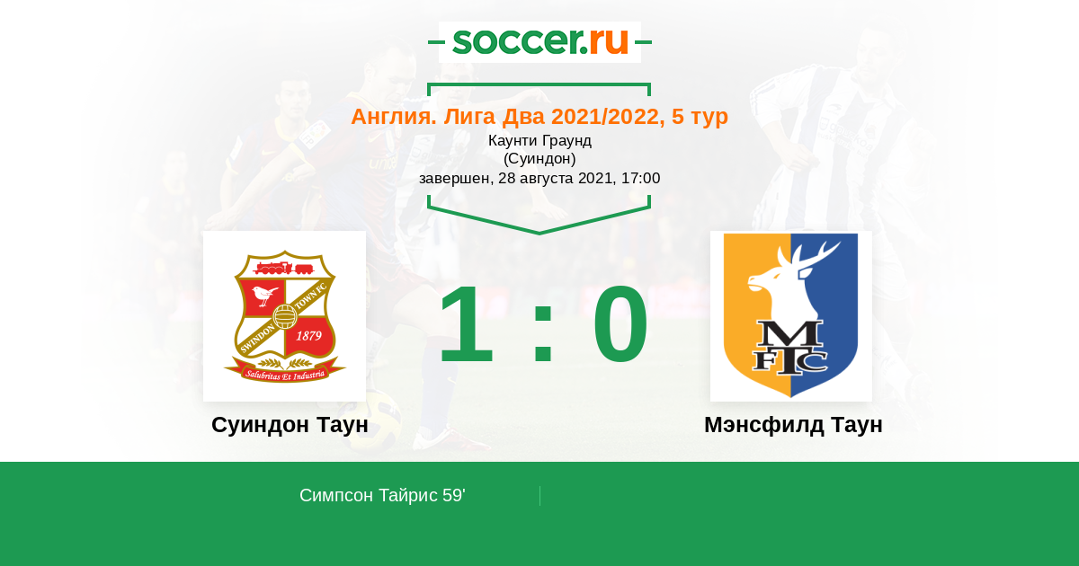Протокол матча Суиндон Таун против Мэнсфилд Таун