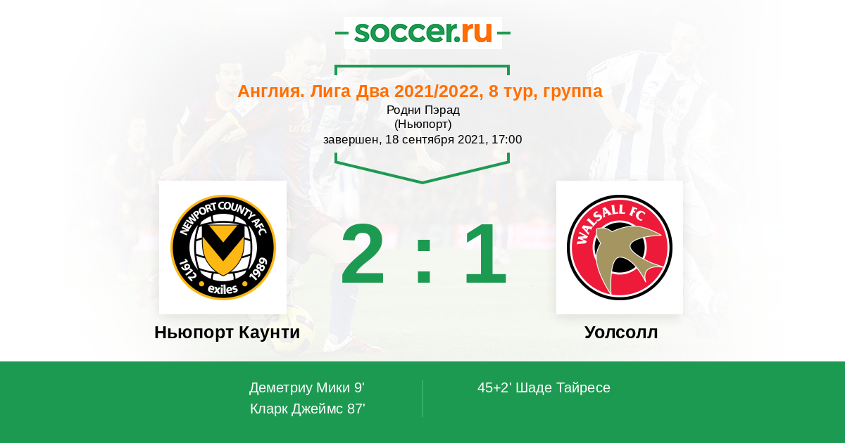 Протокол матча Ньюпорт Каунти против Уолсолл