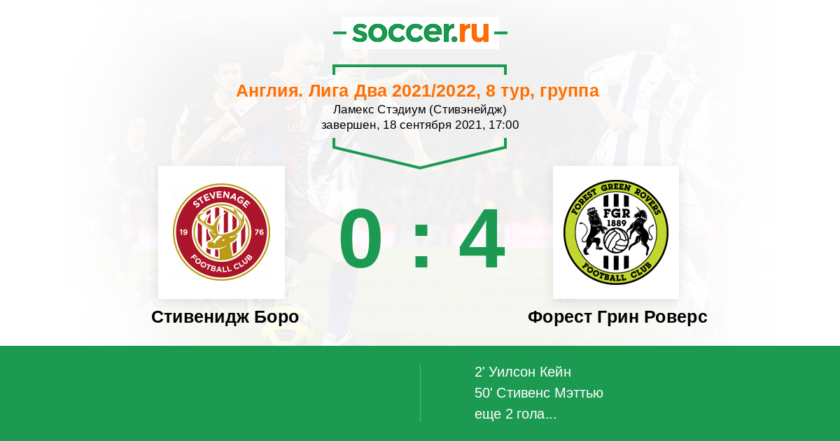 Протокол матча Стивенидж Боро против Форест Грин Роверс