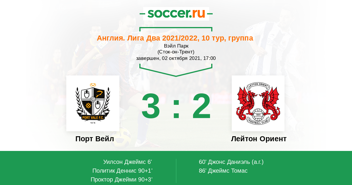 Протокол матча Порт Вейл против Лейтон Ориент