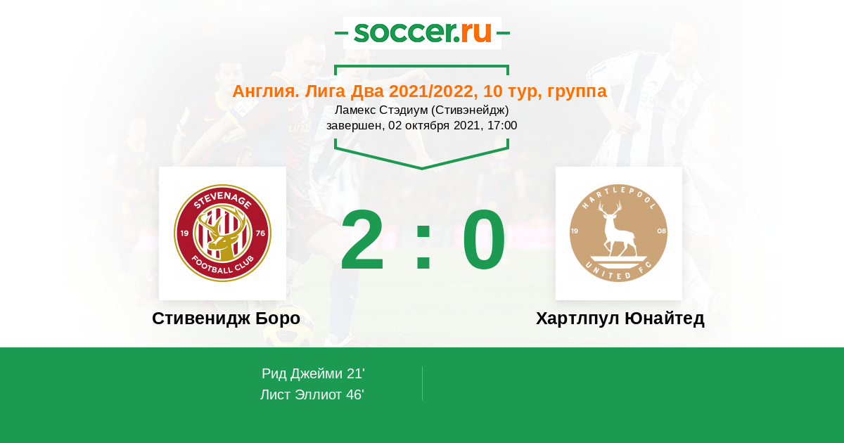 Протокол матча Стивенидж Боро против Хартлпул Юнайтед
