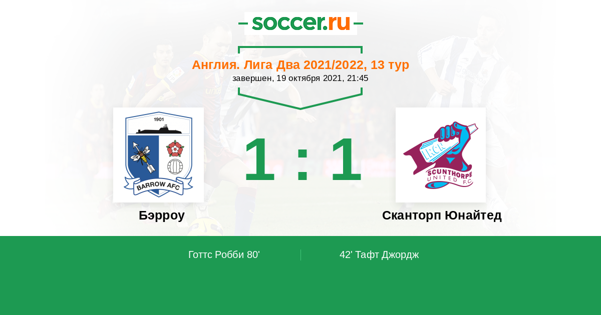Протокол матча Бэрроу против Сканторп Юнайтед