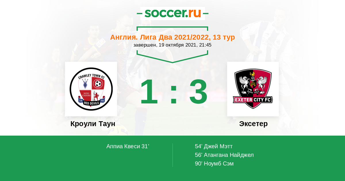 31' (1:0) Аппиа Квеси (21) (Надесан Эшли (10))