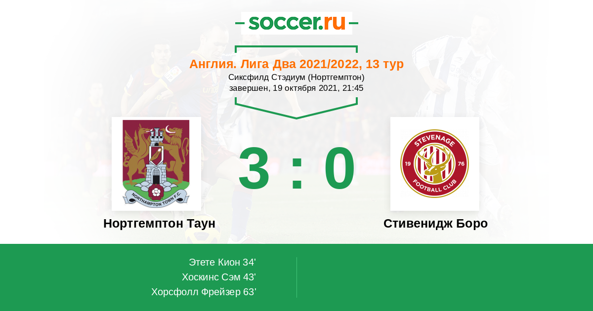 Протокол матча Нортгемптон Таун против Стивенидж Боро