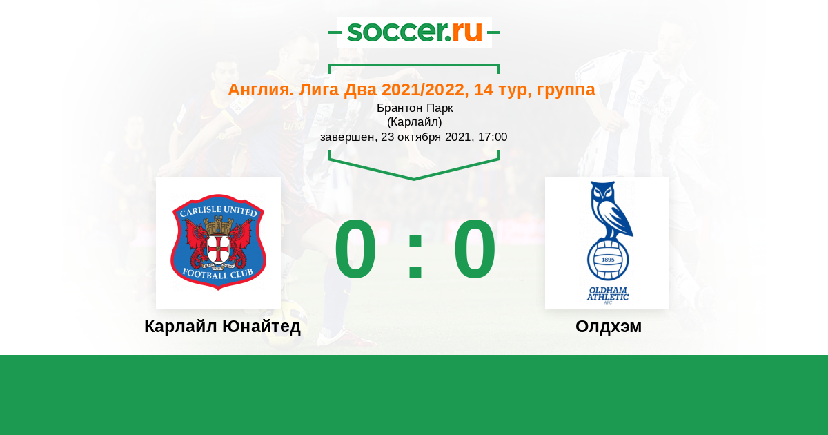 Протокол матча Карлайл Юнайтед против Олдхэм