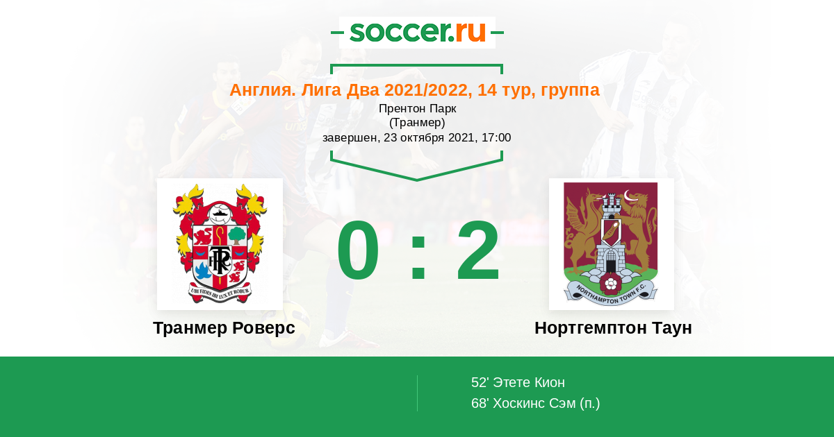 Протокол матча Транмер Роверс против Нортгемптон Таун