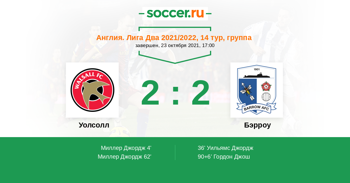 Протокол матча Уолсолл против Бэрроу