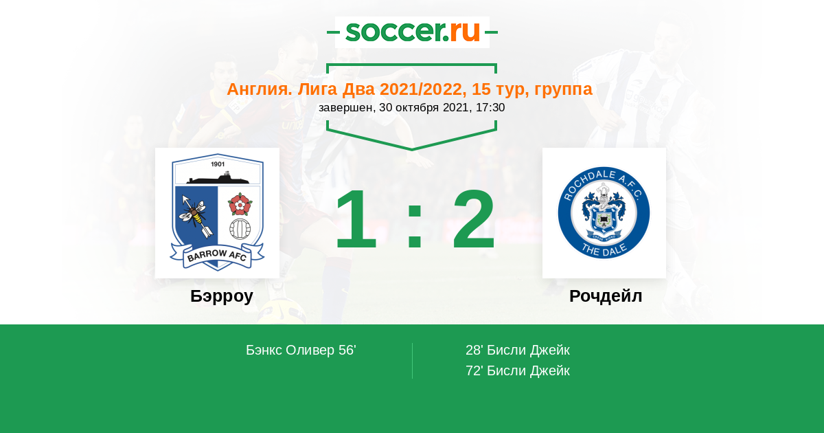 Протокол матча Бэрроу против Рочдейл