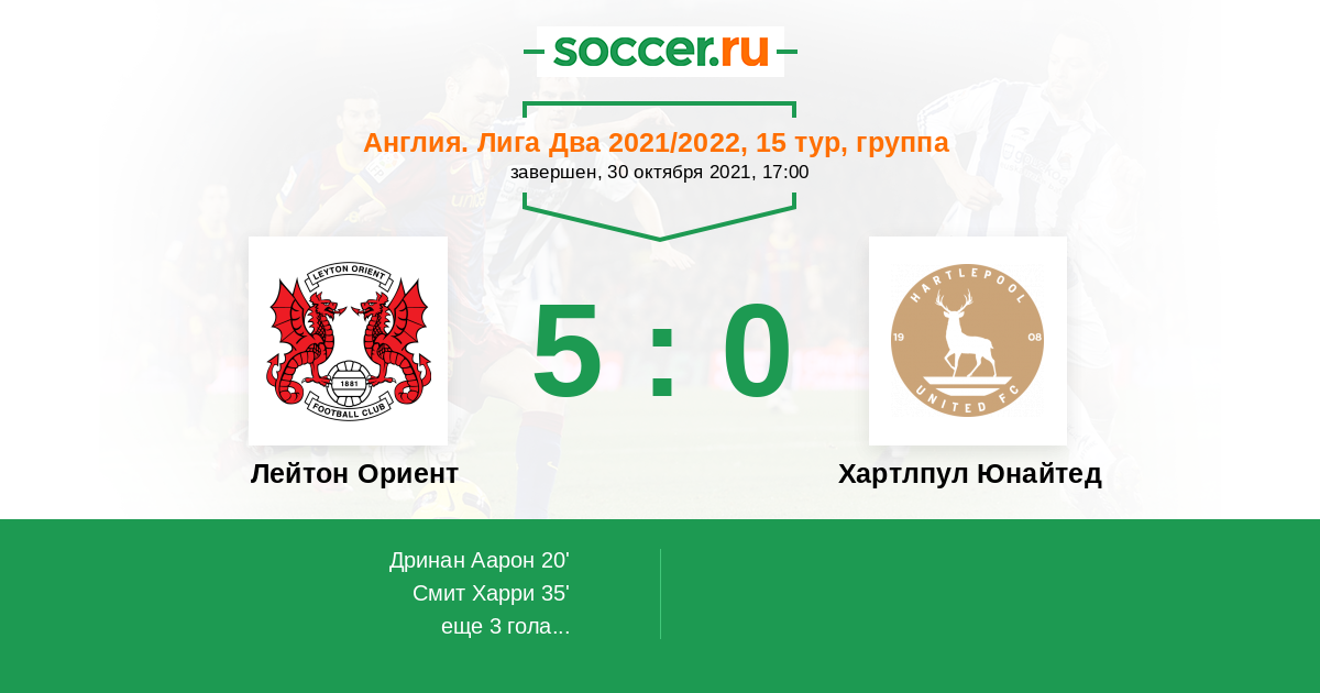 Протокол матча Лейтон Ориент против Хартлпул Юнайтед