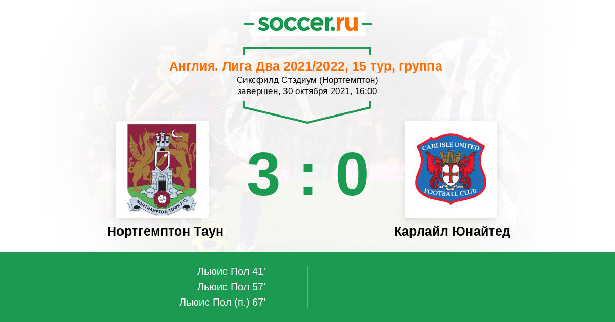 Протокол матча Нортгемптон Таун против Карлайл Юнайтед