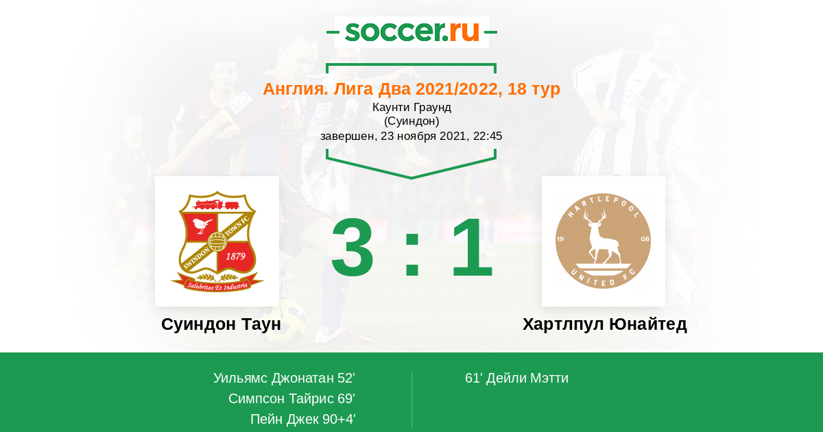 Протокол матча Суиндон Таун против Хартлпул Юнайтед