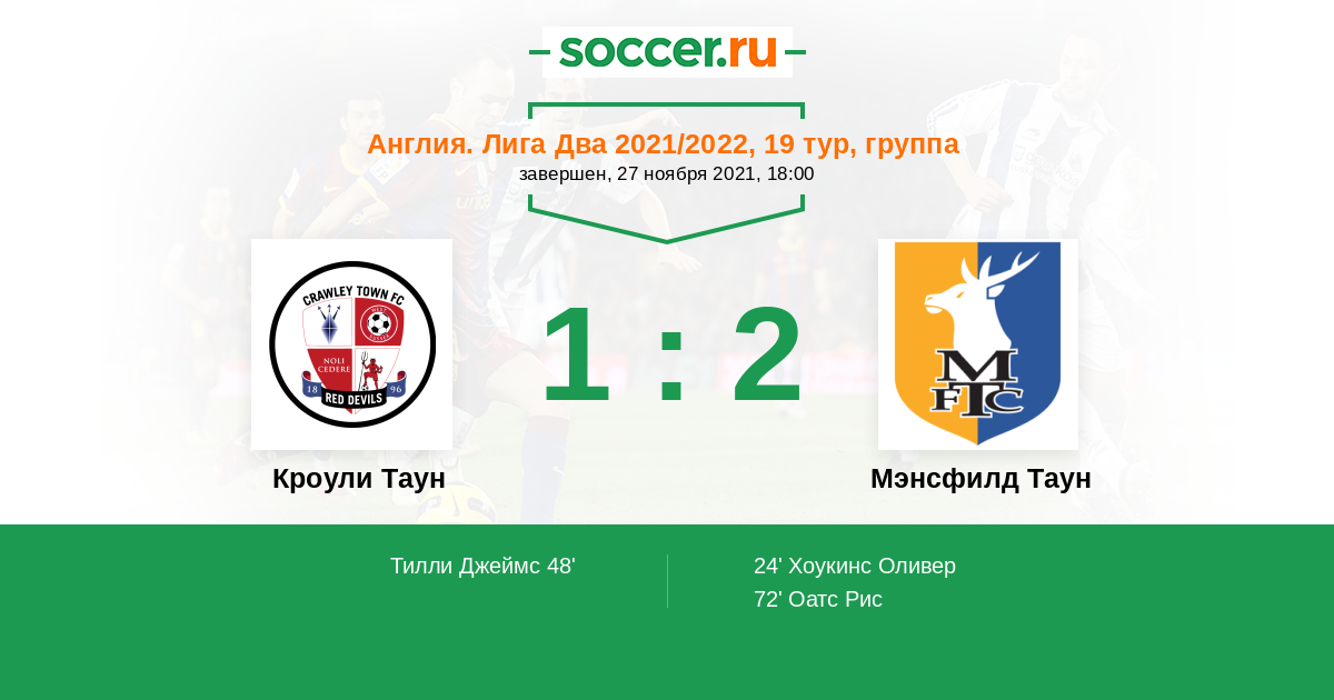 Протокол матча Кроули Таун против Мэнсфилд Таун