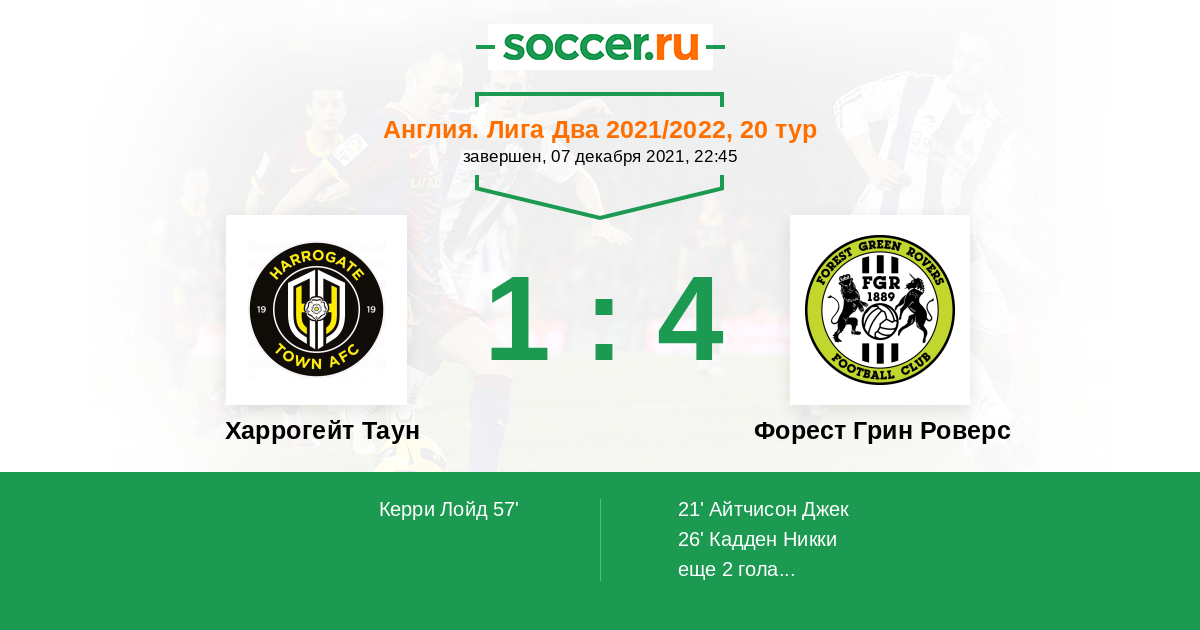 Протокол матча Харрогейт Таун против Форест Грин Роверс