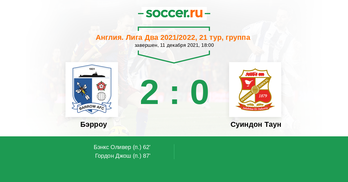 Протокол матча Бэрроу против Суиндон Таун