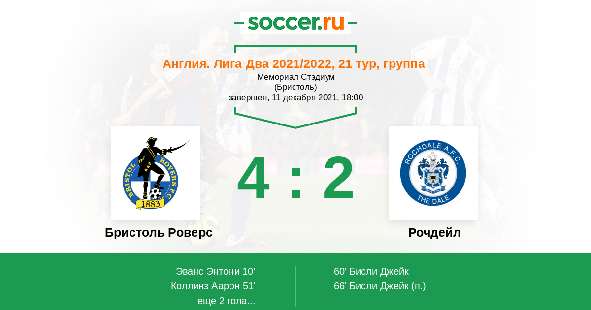 Протокол матча Бристоль Роверс против Рочдейл