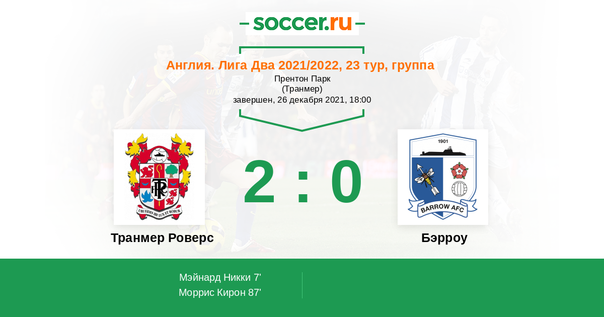 Протокол матча Транмер Роверс против Бэрроу