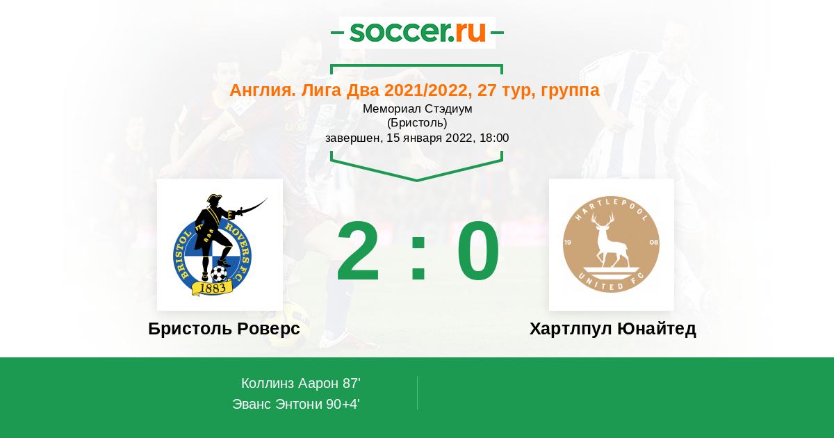 Протокол матча Бристоль Роверс против Хартлпул Юнайтед