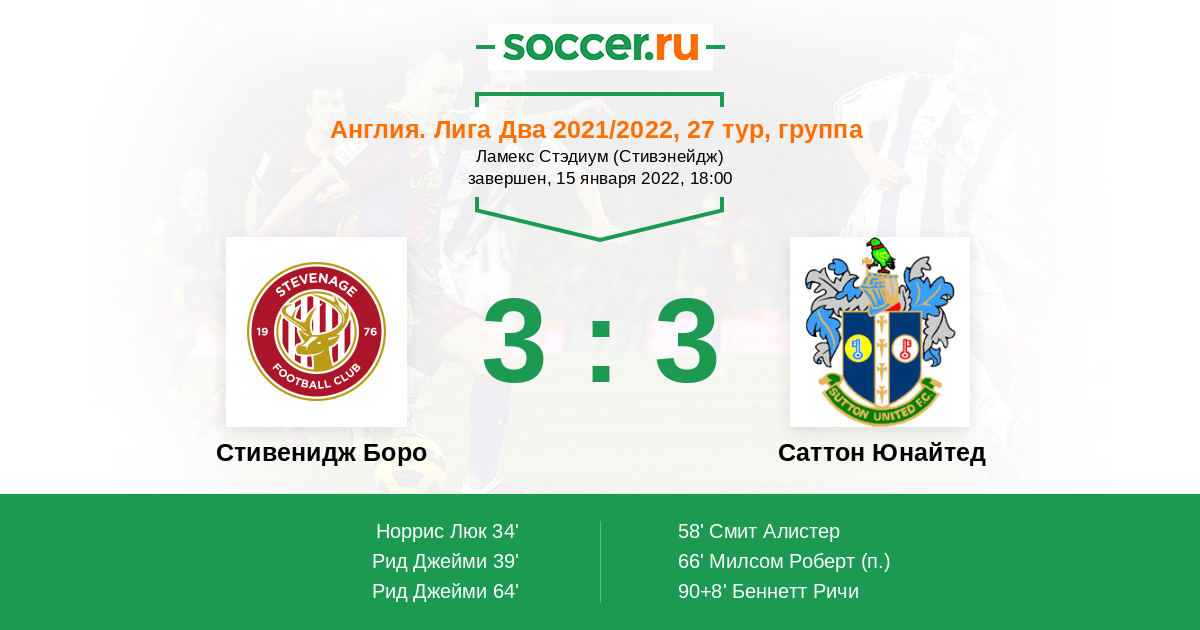 Протокол матча Стивенидж Боро против Саттон Юнайтед