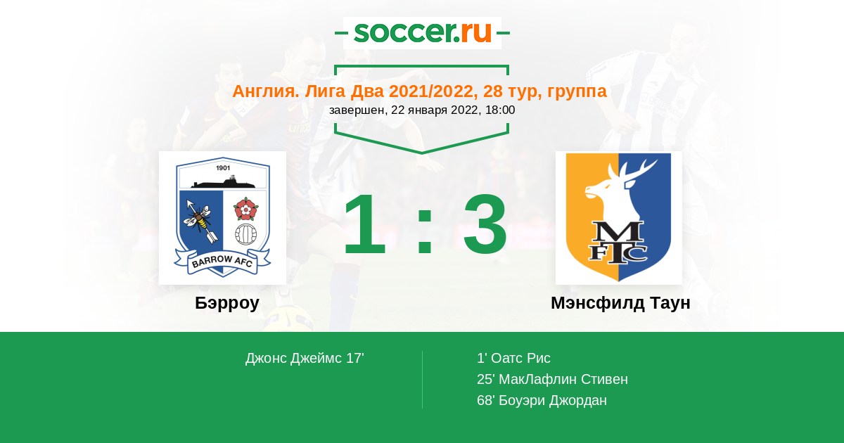 Протокол матча Бэрроу против Мэнсфилд Таун