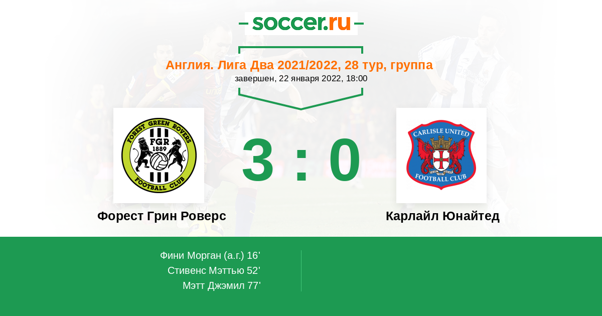 Протокол матча Форест Грин Роверс против Карлайл Юнайтед