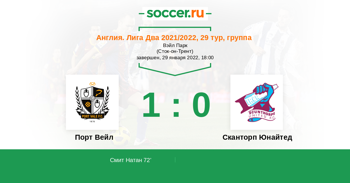 Протокол матча Порт Вейл против Сканторп Юнайтед