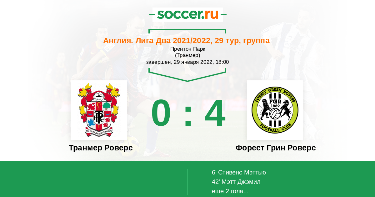 Протокол матча Транмер Роверс против Форест Грин Роверс