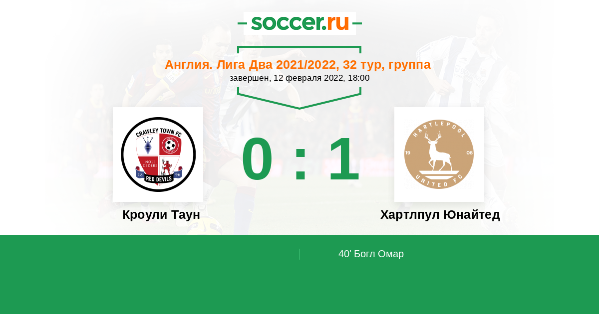 Протокол матча Кроули Таун против Хартлпул Юнайтед