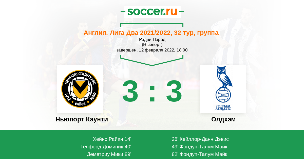 Протокол матча Ньюпорт Каунти против Олдхэм
