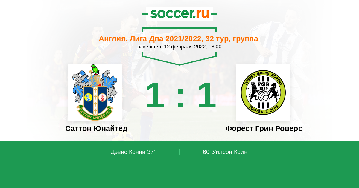 Протокол матча Саттон Юнайтед против Форест Грин Роверс