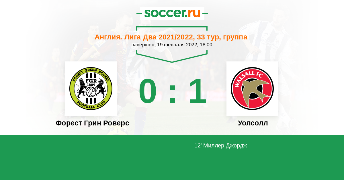 Протокол матча Форест Грин Роверс против Уолсолл