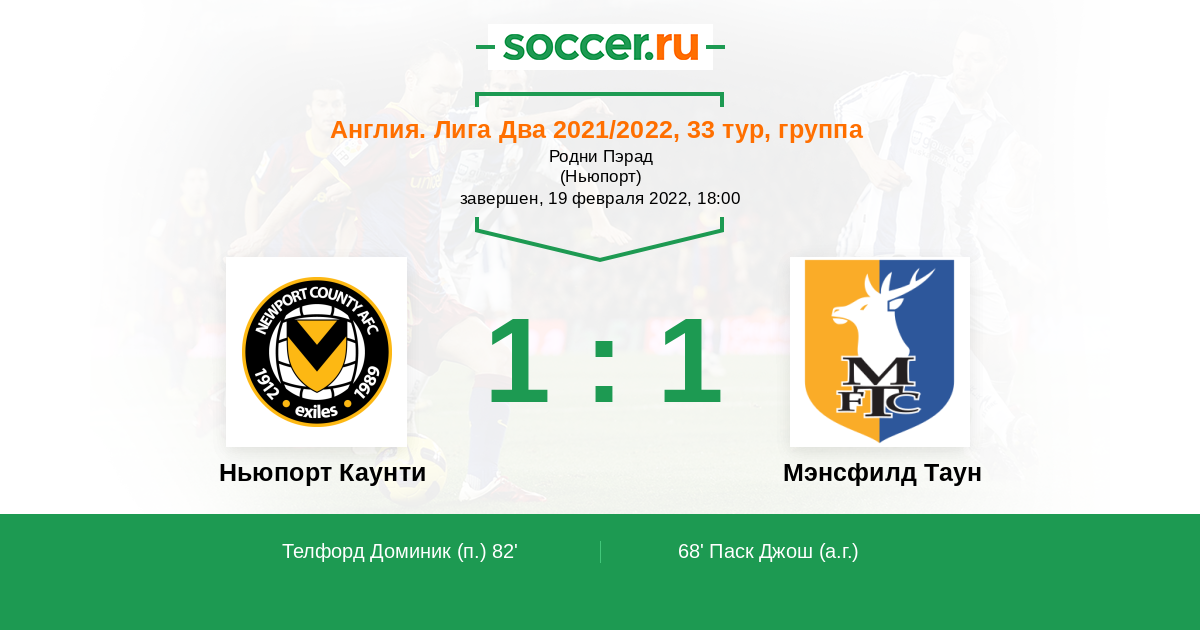 Протокол матча Ньюпорт Каунти против Мэнсфилд Таун