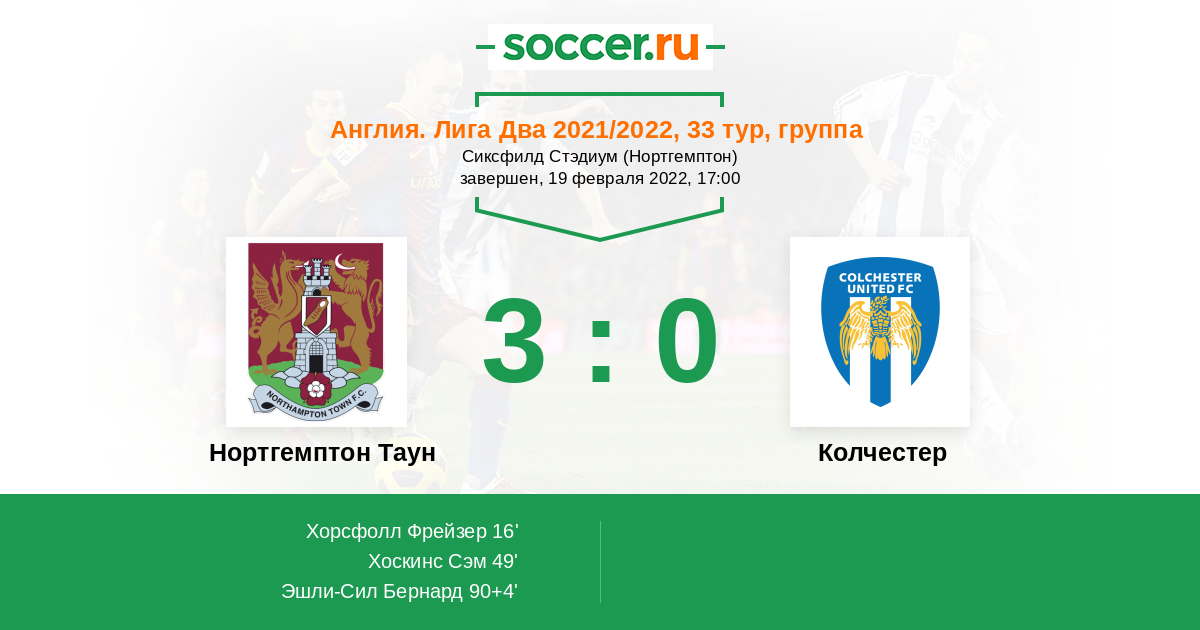 16' (1:0) Хорсфолл Фрейзер (6) (Пиннок Митчелл (11))