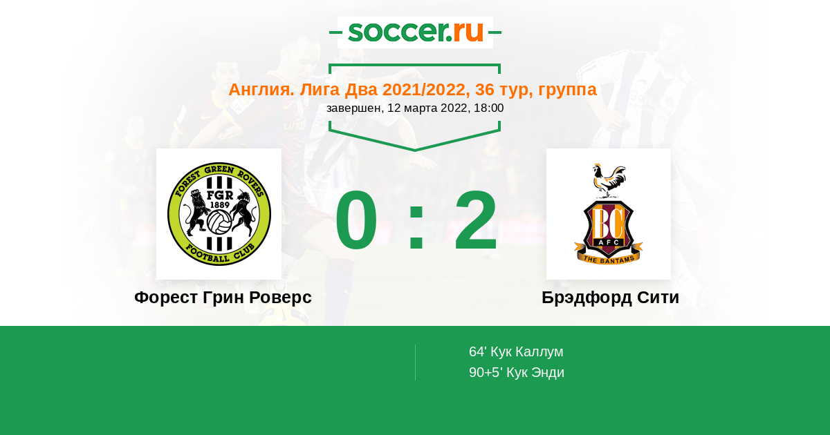 Протокол матча Форест Грин Роверс против Брэдфорд Сити