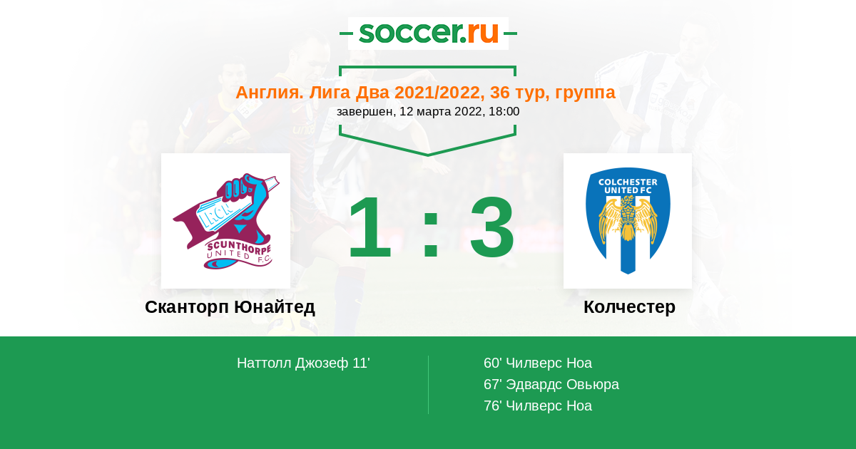 Протокол матча Сканторп Юнайтед против Колчестер
